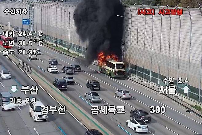 경부고속도로 버스 화재 원인 위치 기흥 휴게소