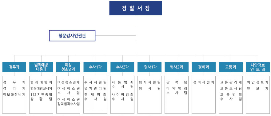 • 259개 경찰서: 지역사회와 가장 밀접하게 연결된 기관으로, 국민의 일상적 안전을 보장합니다. 경찰서는 범죄 예방 및 사건 처리를 실질적으로 수행하는 기관으로, 민원 처리와 긴급 상황 대응에서도 핵심적인 역할을 합니다. 경찰서는 주민들과의 소통을 통해 지역 맞춤형 치안 서비스를 제공합니다.