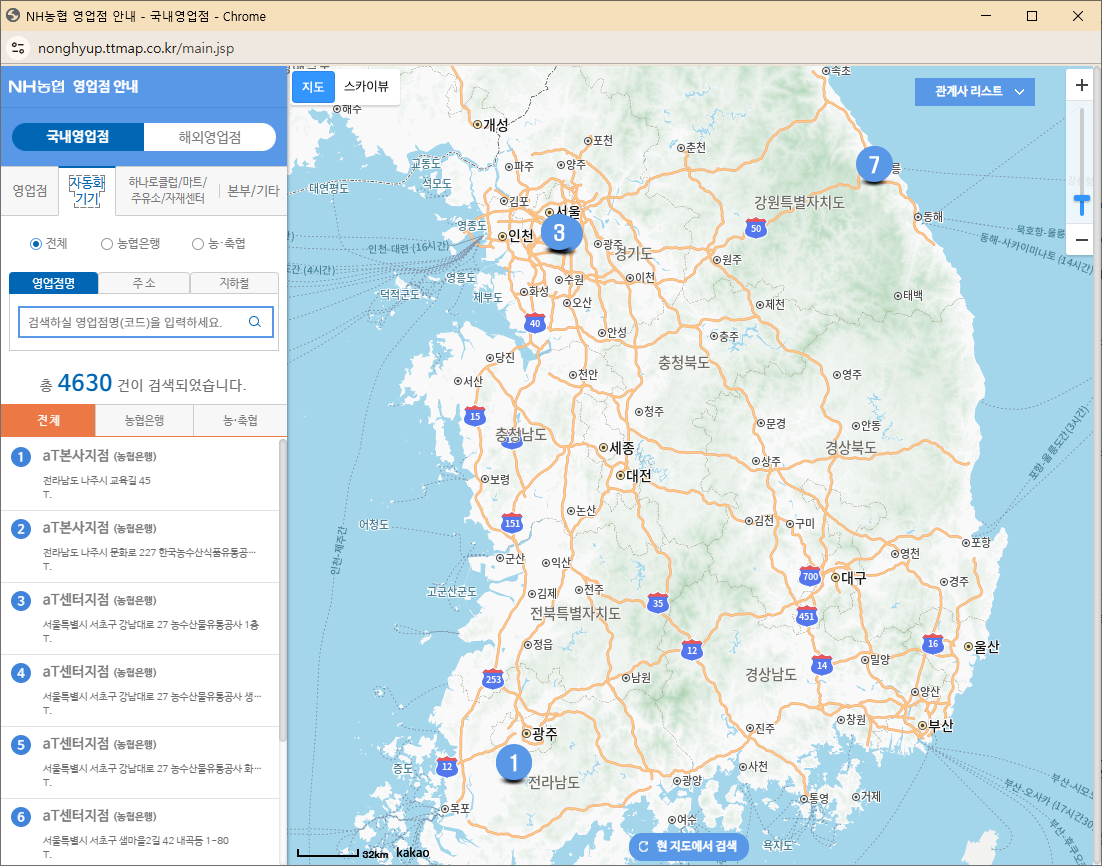 네이버 검색창에 ‘농협은행’ 또는 ‘농협 ATM’ 키워드를 입력하면, 농협은행의 공식 홈페이지 링크와 함께 영업점 및 자동화기기 위치 정보를 확인할 수 있습니다.
