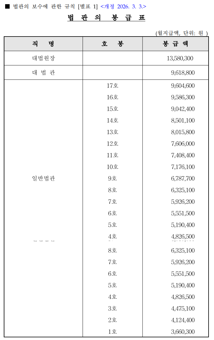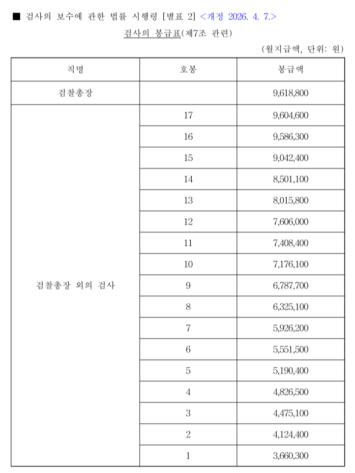 먼저 2026년 기준 검사 및 법관 봉급표의 핵심 구간을 정리하면 다음과 같습니다.
