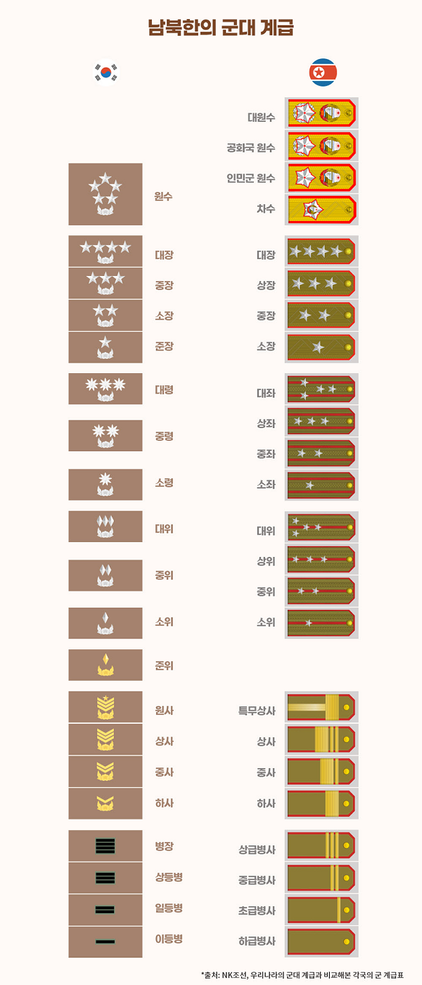 이번 포스팅에서는 북한군 계급체계의 특징과 복무 기간에 대해 상세히 살펴보고, 그 의미를 설명해 보겠습니다.