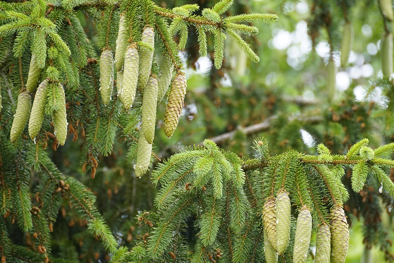 - 잣나무: 잣이라는 식용 가능한 씨앗을 품고 있는 큰 솔방울을 생산합니다.
