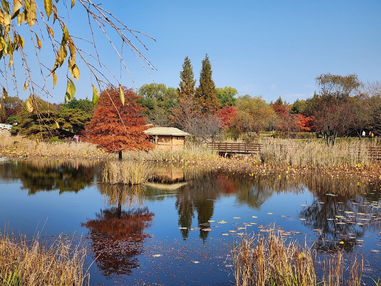 드림파크 야생화단지는 단순한 꽃밭 이상의 매력을 자랑합니다. 이곳은 수도권 매립지였던 곳을 재활용하여 녹지공간으로 조성한 곳으로, 황량했던 매립지가 지금은 시민들의 안식처로 재탄생한 사례입니다. 드림파크의 넓은 산책로는 자작나무길, 메타세콰이어길, 핑크뮬리원, 단풍나무길 등으로 구성되어 있으며, 총 약 3.5km에 걸쳐 다양한 테마가 있는 산책로를 즐길 수 있습니다. 가을빛이 물든 자작나무와 노랗게 물든 은행나무의 조화는 가히 환상적이며, 산책을 즐기기에 더할 나위 없이 좋은 곳입니다.