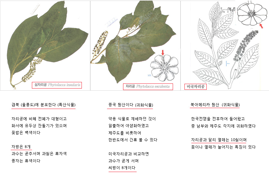자리공과 미국자리공 구분: 장록 뿌리 독성